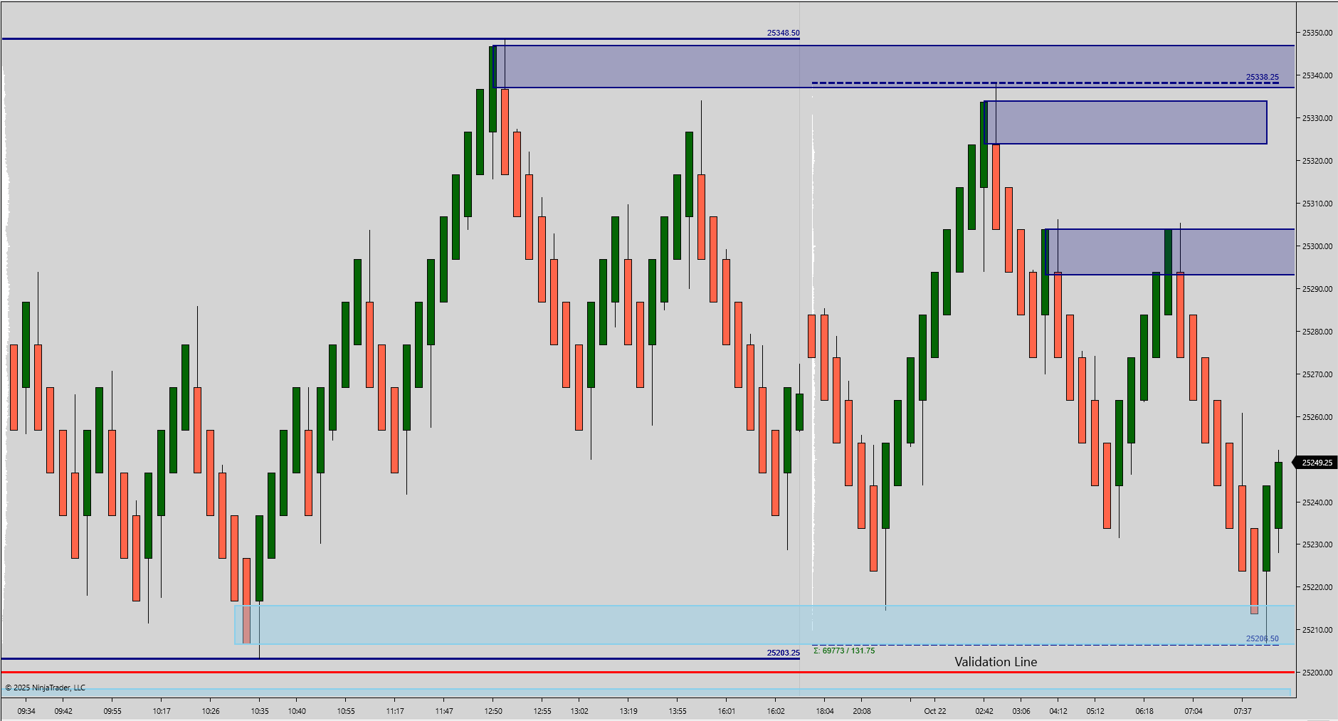 Untested HTF Structure Lows – 25203.25 / 25045.25 / 24955.75